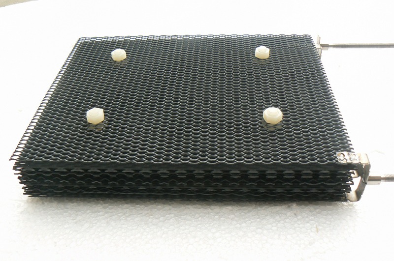 我公司主要針對此行業(yè),設計并研發(fā)了一種具有活化層的銥鉭陽極板,并且也申請了實用新型專利,該陽極在鈦基體上涂覆由錫和銻氧化物組成的活化層,一方面能使電解液難以滲透到鈦表面,氧原子或02-離子向鈦基體的擴散也受到了阻擋,從而避免了Ti02的生成,同時也提高了銥鉭涂層的析氧過電位。主要在有機廢水處理中體現(xiàn)其獨特的優(yōu)越性,能使有機物直接在陽極表面被氧化成CO2和水,也防止了原生態(tài)的氧原子進入涂層內部破壞涂層,從而增強陽極使用壽命。